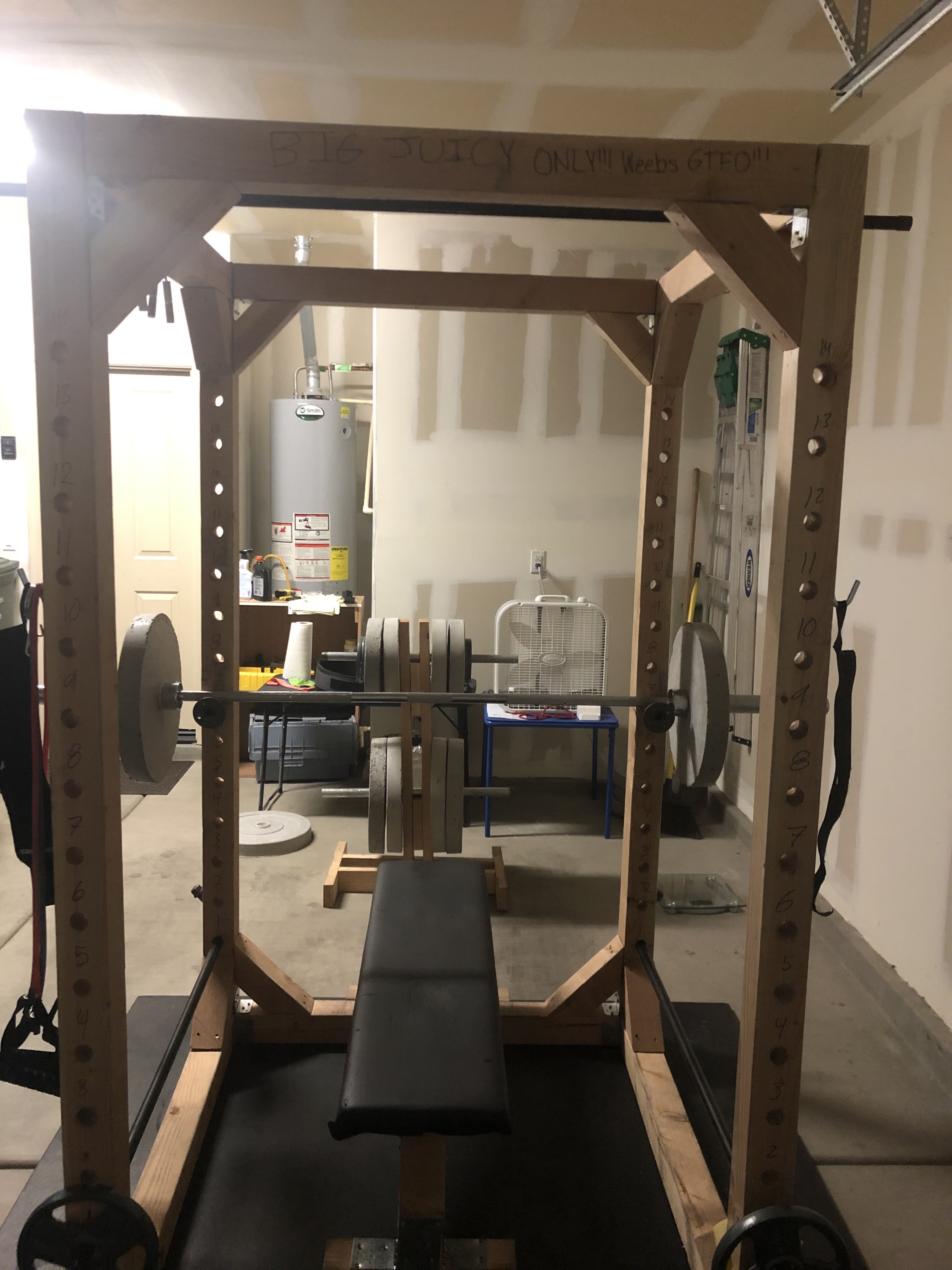 During the COVID-19 pandemic in 2020, I built an home squat rack with my then college roommate using 4x4 wood posts from Home Depot and cement weights to continue my training when gyms were closed. At first it started off as a joke, but quickly became one of my favorite projects. From buying the cement molds on Ebay and mixing our own concrete, to buying an overpriced 200 dollar barbell on Offer-Up, to breathing in cement dust everytime we walked into our garage, it was a great and memorable experience that I look fondly back on. I certainly shed a tear when I had to tear it down after moving out for my masters to California in 2021.