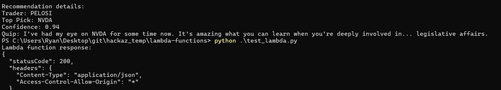 The premise was straightforward: if public officials are allowed to trade stocks while in office, what if we simply copied their behavior and automated it? We pulled real congressional trading data from CapitolTrades.com and fed it into an LLM to generate stock recommendations modeled after the trading patterns of various political figures.